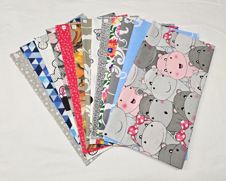 Balíček zbytkové metráže bavlna je výhodný set 100% bavlněných látek v pestrém mixu barev a vzorů. Skvělá volba pro patchwork, učení šití i drobné kreativní projekty.