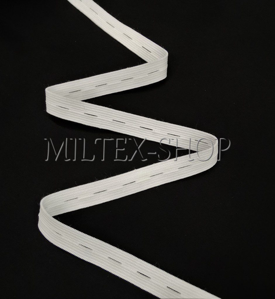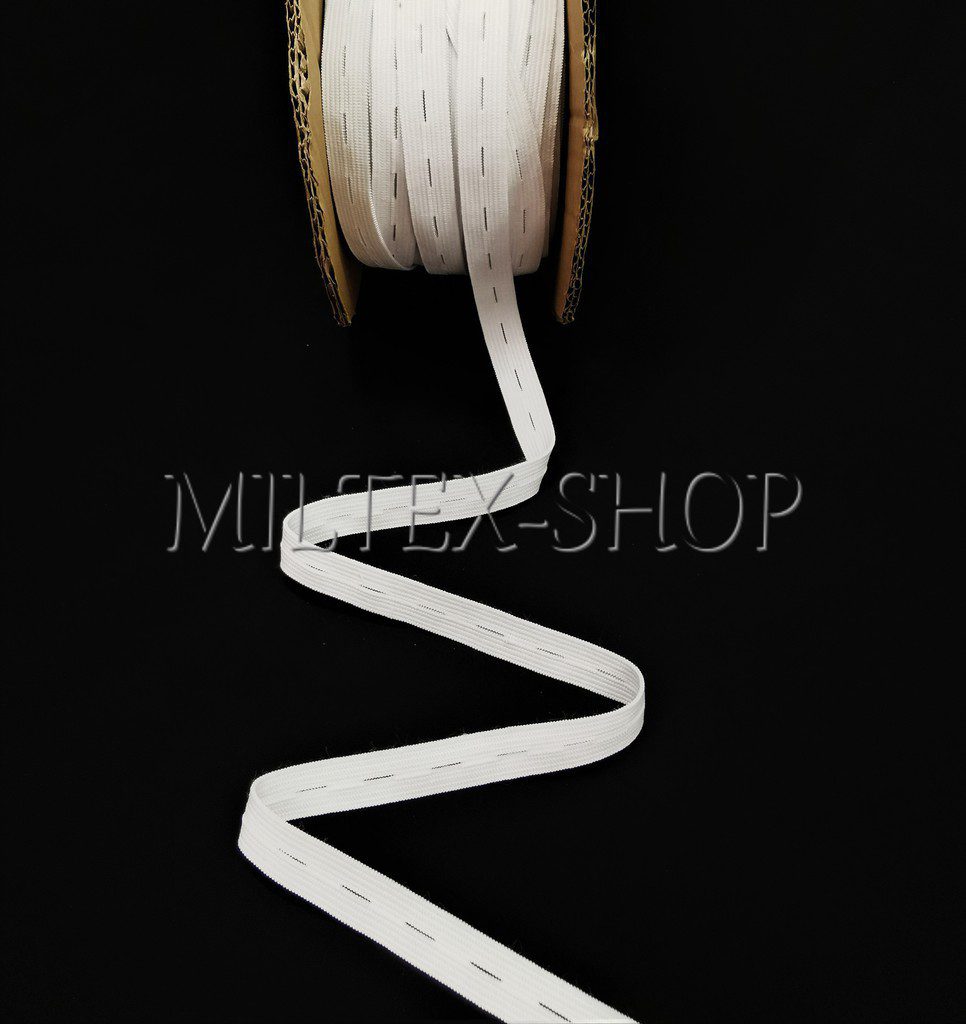Guma prádlová dírková šíře 16mm bílá je speciální pruženka s otvory, dírka 10mm, která umožňuje regulaci obvodu pomocí knoflíků. Ideální řešení pro nastavitelný pas u oděvů.