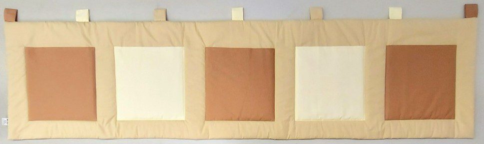 Tento kapsář 50x200cm béžová je ušitý v kombinaci béžového podkladu, tři kapsy jednobarevná kávová a dvě kapsy krémová, které působí elegantně a nadčasově.