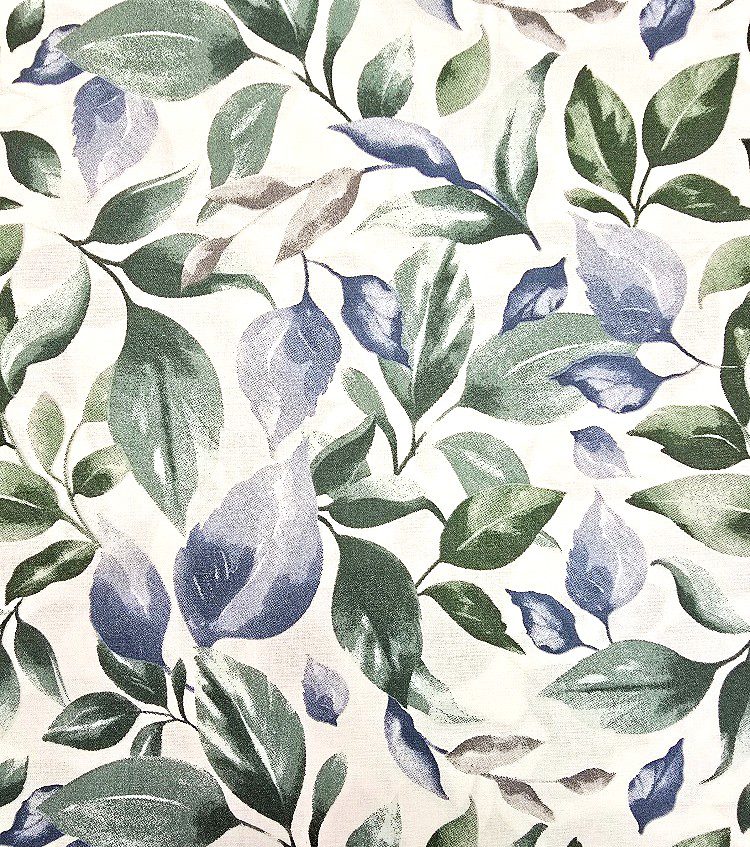 Látka metráž lístky modré a zelené zaujme přírodním motivem listů, který působí svěže, klidně a elegantně.