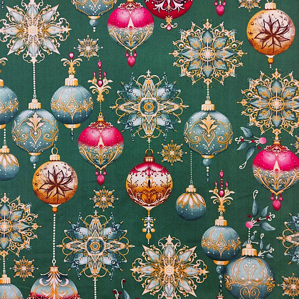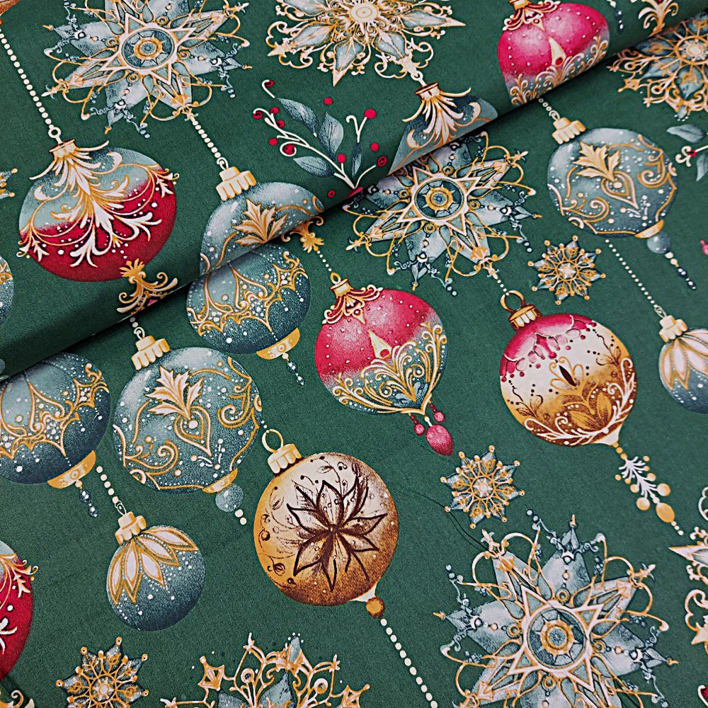 Látka metráž vánoční ozdoby na zelené je pevná, příjemná na dotek a dobře se s ní pracuje. Skvěle se hodí na ubrusy, běhouny, povlaky na polštáře, závěsy i další vánoční dekorace a sváteční tvoření.