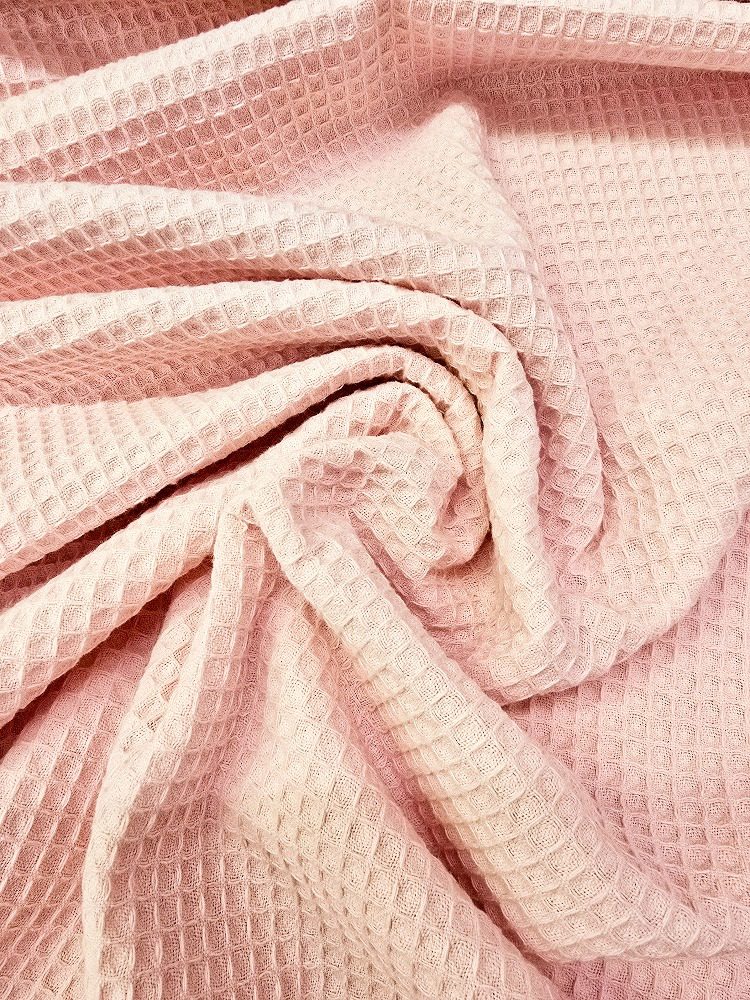 Ano, vafle piké metráž růžová ze 100% bavlny je prodyšná, savá a velmi příjemná na dotek, proto se často používá pro dětské výrobky.